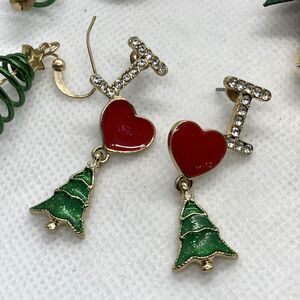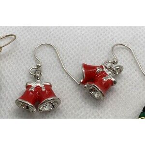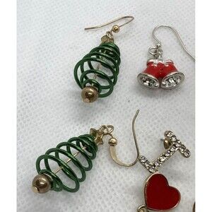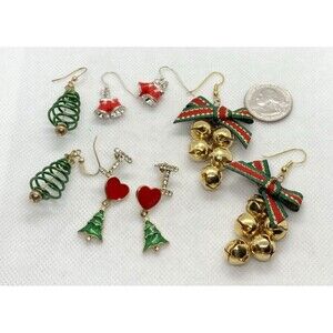 Vintage - Now Lot of 4 Pairs Dangle Pierced Christmas Earrings Bell Bow Tree
