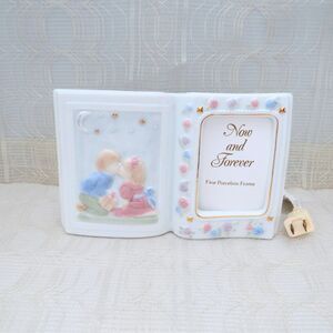 This Vintage Now and Forever Porcelain Frame and Nightlight is a beautiful and delicate piece perfect for displaying a photo of your baby or child. The floral pattern and white color give it a timeless and elegant look, while the rectangular shape and rear-loading photo insert make it easy to use. Manufactured in 1999 in China, this photo picture frame is suitable for a 4 x 3 inch photo and stands at 9 inches long and 5.75 inches tall. With a glazed finish and weighing 1.5 pounds, it is a thoughtful and stylish addition to any nursery or child's room.