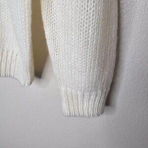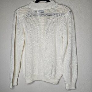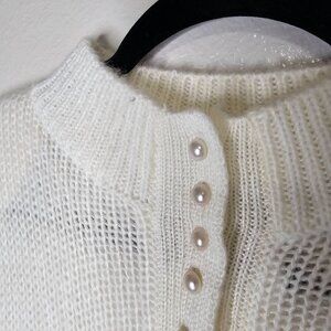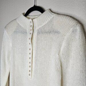 Dainty preppy cream pull over sweater. Buttons up half way with faux pearl buttons. Mock Neck. Light shoulder pads (easy to cut out if you prefer).