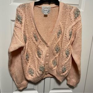 Vintage Nuggets Knit by Hand Cardigan Sweater size medium - made in Korea