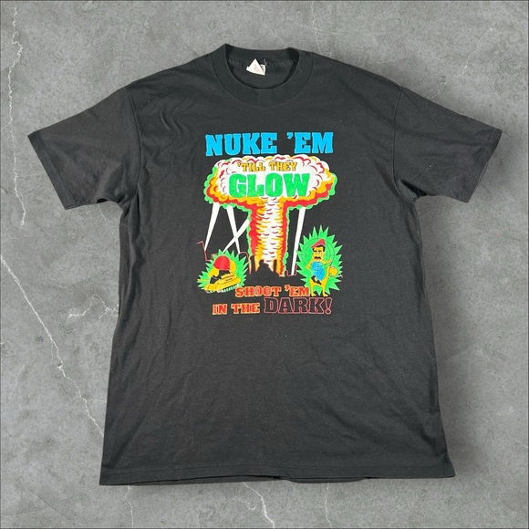 Vintage Nuke 'Em Till They Glow Shirt Mens XL Black 90s Pro War Shoot Em In Dark