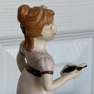 This beautiful vintage Capodimonte figurine features a singing girl with a fox, adorned with delicate pink roses. The intricate porcelain material and small size make it a perfect addition to any collection, for all occasions.