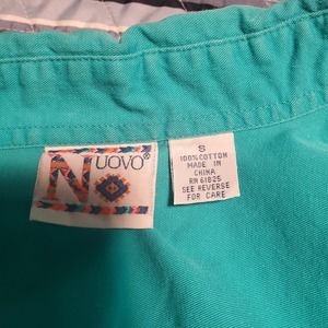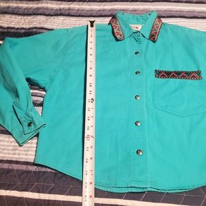 Vintage Nuovo Sz S Aztec Embellished Blue Cotton Cropped Button Up Shirt