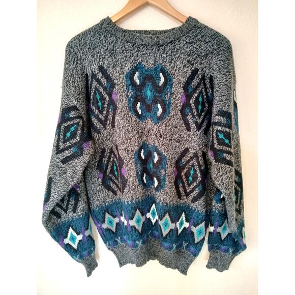 Vintage Nuovo new forces 80s abstract gray and blue sweater