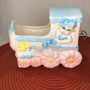 Vintage Nursery Themed Porcelain Music Box and Decorative Planter Lot is in excellent condition. The music box still works, and plays, rock-a-bye baby! They are beautiful and so nostalgic, and would still make a perfect gift or decoration for any nursery!