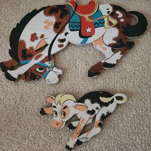 Up for sale are these vintage nursery cowboy figures. They are old so they do have some bends and dings. There are no missing pieces on them.