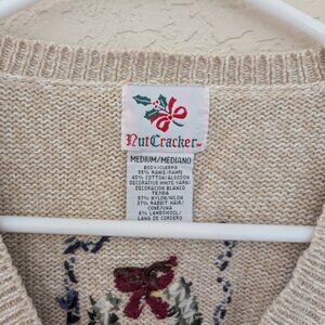 Vintage Nutcracker Christmas Knit Embroidered Sweater Cotton Ramie Size M