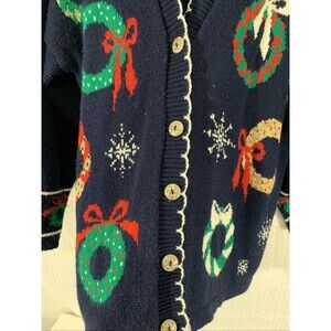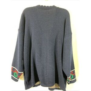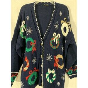 Vintage Nutcracker Christmas Sweater Cardigan Womens 2X XL Navy Wreaths