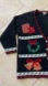 Celebrate the season with this charming black sweater featuring delightful holiday motifs. Perfect for adding a festive touch to your wardrobe.