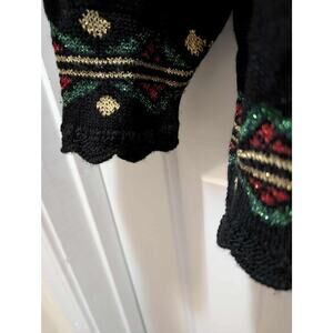 This Vintage Nutcracker Ugly Christmas Sweater features a fun and festive Dog On Skis design, perfect for the holiday season. The tight-knit sweater is made of acrylic material with lurex accents, adding a touch of sparkle. With a round neck and long sleeves, this women's XL sweater is machine washable and has a stretch for comfort. The black sweater is great for Christmas parties or casual winter gatherings, and showcases a playful theme that is sure to bring joy and laughter to your holiday celebrations.