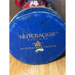 Markings: Base reads "NUTCRACKER VILLAGE 2001 NUTCRACKER PRINCE"; partial sticker shows "MADE IN" (country not legible).