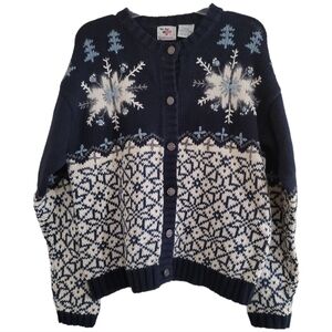 Vintage Nutcracker Winter Snowflake Sweater Cardigan Medium Blue White