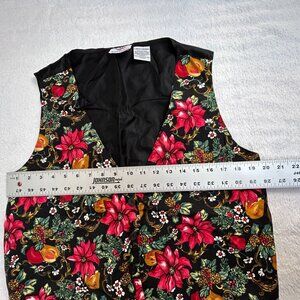 Vintage Nutcracker Womens Large Christmas Holiday Floral Vest Black Cottagecore