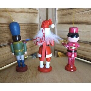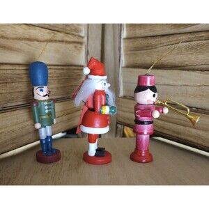 Vintage Nutcracker Wooden Soldiers Christmas Tree Ornaments 3.5 - 4" Lot Of 3