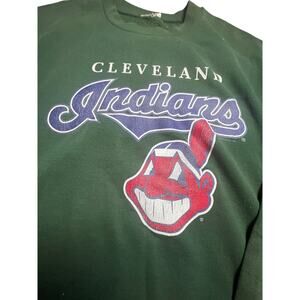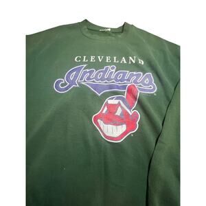 Vintage Nutmeg Cleveland Indians chief 90s crewneck over sized sweater large logo face. RARE colors Hunter green