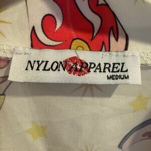 Vintage Nylon Apparel Shirt Womens Medium White/Pink Western Boot Button Up 90s