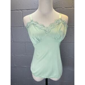 Vintage Nylon Camisole Lace Trim Small Hand Dyed Upcycled Lime Cream