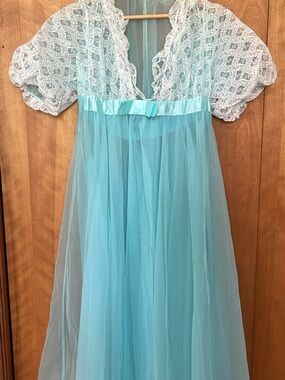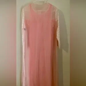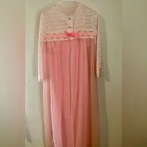Vintage Nylon Lace Pink Lingerie Nightgown Robe Set Women’s Size M Daniella Inc