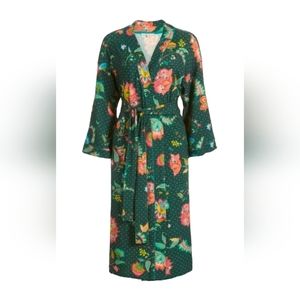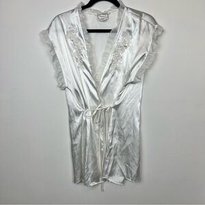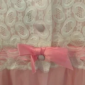 Robe has 3 buttons, bow is decorative. Lace sleeves.
