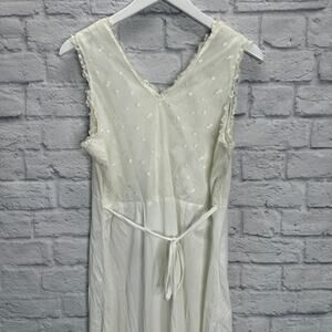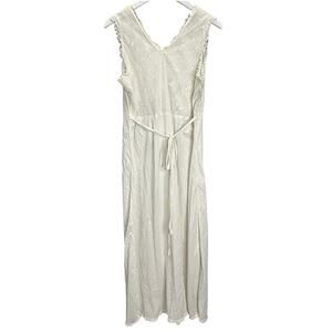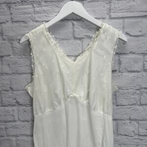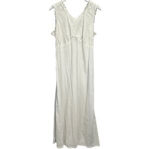 Vintage Nylon Maxi Nightgown White Sleeveless Empire Waist Lined Size L Lace