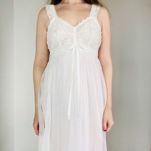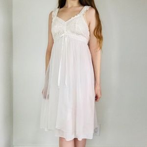 Vintage all nylon white night dress with lace and ribbon detailing by RS Apparel. Made in USA.