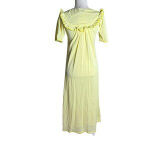 Vintage Nylon Nightgown Ruffled Collar Small Yellow Floral Embroidery Maxi