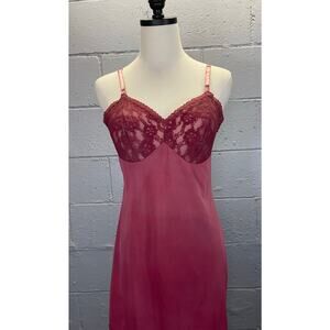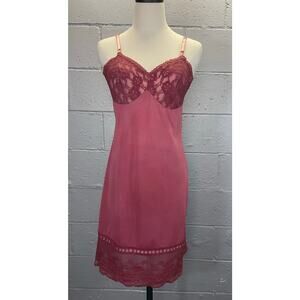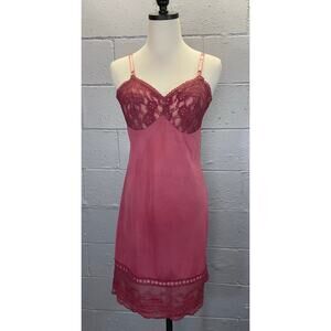 Vintage Nylon Slip Dress Lace Cups Mauve Hand Dyed Small