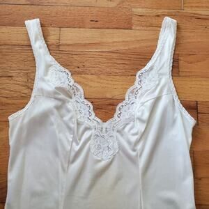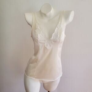 Vintage Nylon V Neck Camisole Lace Trim Boho Coquette Minimalist Preppy Retro