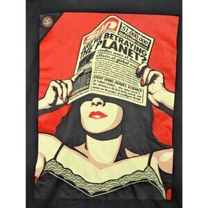 Vintage OBEY Right Wing Political Global Warming Science Black Shirt Size Medium