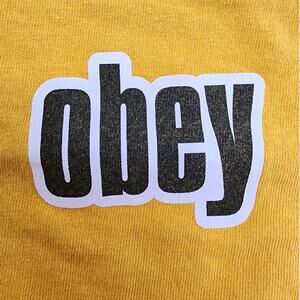 Vintage OBEY Top Womens M Mustard Yellow Boxy Crop Logo Graphic Tee Casual