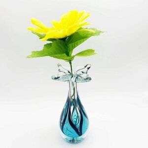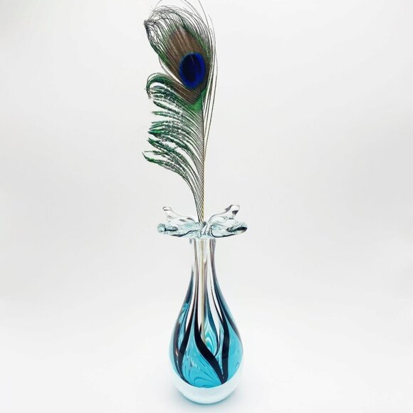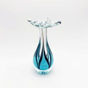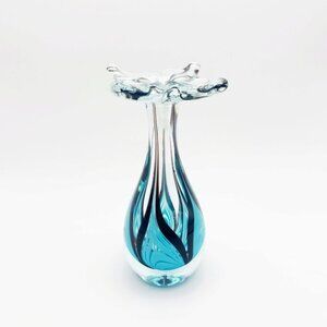 Vintage OBG Ornamental Blown Glass Turquoise & Black Blue Bud Vase