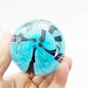 Rare Vintage 1991 American Art Glass OBG Ornamental Blown Glass Turquoise Blue & Black Vase 5 1/4”