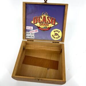 Vintage OCASO Carved Wood Cigar Box 7 X 6 E