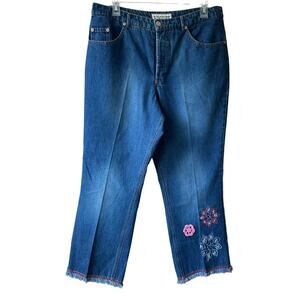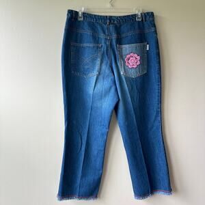 Vintage OIlily Jeans Wear Embroidered Jeans Cropped Boho Prairie Cottage Core Floral EU 44 US 14