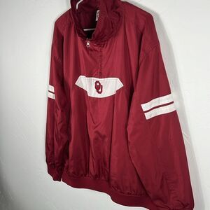 🏈🏈Vintage OKLAHOMA SOONERS Pullover 1/4 Zip Windbreaker Jacket Sz Large - READ