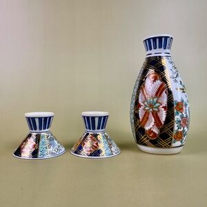 Vintage OMC Imari-Style Japanese Sake Set | Carafe & 2 Cups | Hand-Painted