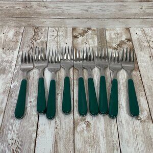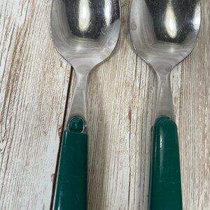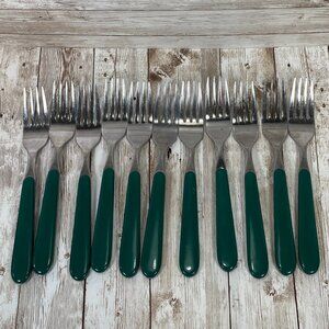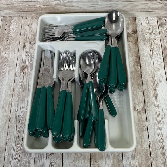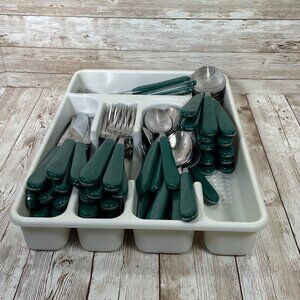 Vintage ONEIDA 55 Pc Lot Green Plastic Handle Utensil Stainless Steel Flatware