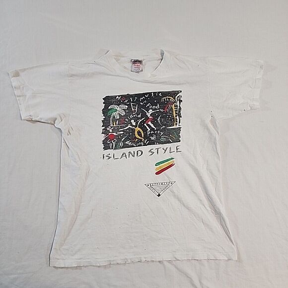 Vintage ONEITA PowerT Duppywear Jamaican TShirt Island Style White Single Stitch