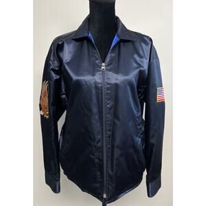 Vintage OOAK 1970s Satin Embroidered Race Car USA Bomber Jacket Reversible Medum