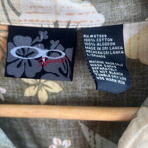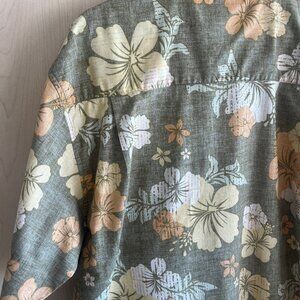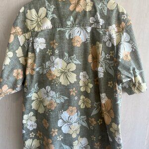 Vintage OP Sports Men’s Size Large Hawaiian Shirt Floral Green Beige Cotton