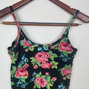 Vintage OP Womens Tank Sz M Betsey Roses Floral Punk Glam Feminine Coquette Boho