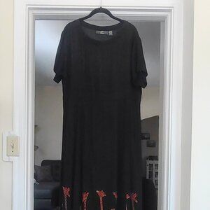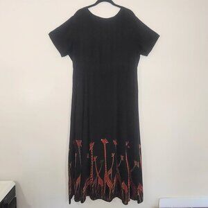 Vintage ORVIS Black Crinkle Maxi Dress Boho Giraffe Nature Safari Women's Large