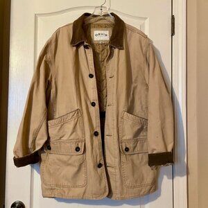 Vintage ORVIS Canvas Chore Barn Coat Field Jacket Corduroy Cuffs Tan Brown Sz L