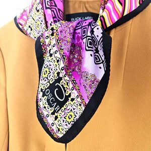 Vintage OSCAR de La Renta Pink Purple Scarf Neckerchief Women Floral Geometric