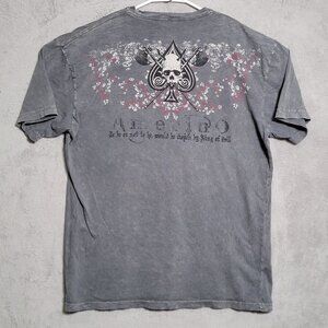 Vintage OTB One True Brand T-Shirt Mens Sz XL Gray Skull Spade Gothic Biker USA