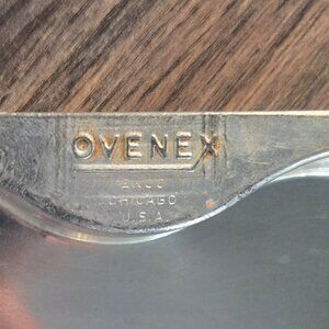 Set of two, OVENEX, tin-plated steel, heart-shaped baking pans. OVENEX baking equipment was first introduced in 1945 and are well-known to stand the test of time. These pans are clearly well-loved, sanitized and in wonderful condition. DIMENSION: 9" x 9" x 1.5" depth.