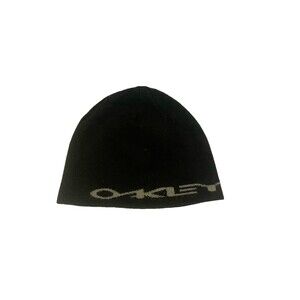 Vintage Oakley Black Beanie Hat Big Spellout Logo