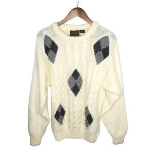 Vintage Oakton Cream & Gray Diamond Accent Grandma Sweater Sz Large