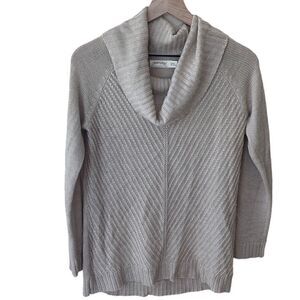 Vintage Oatmeal Cable knit Cowl Neck Ribbed long sweater small