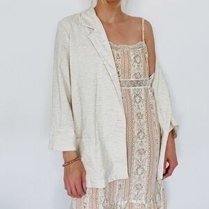 Vintage Oatmeal Flecked Lightweight Oversized Slouchy Single Breasted Blazer